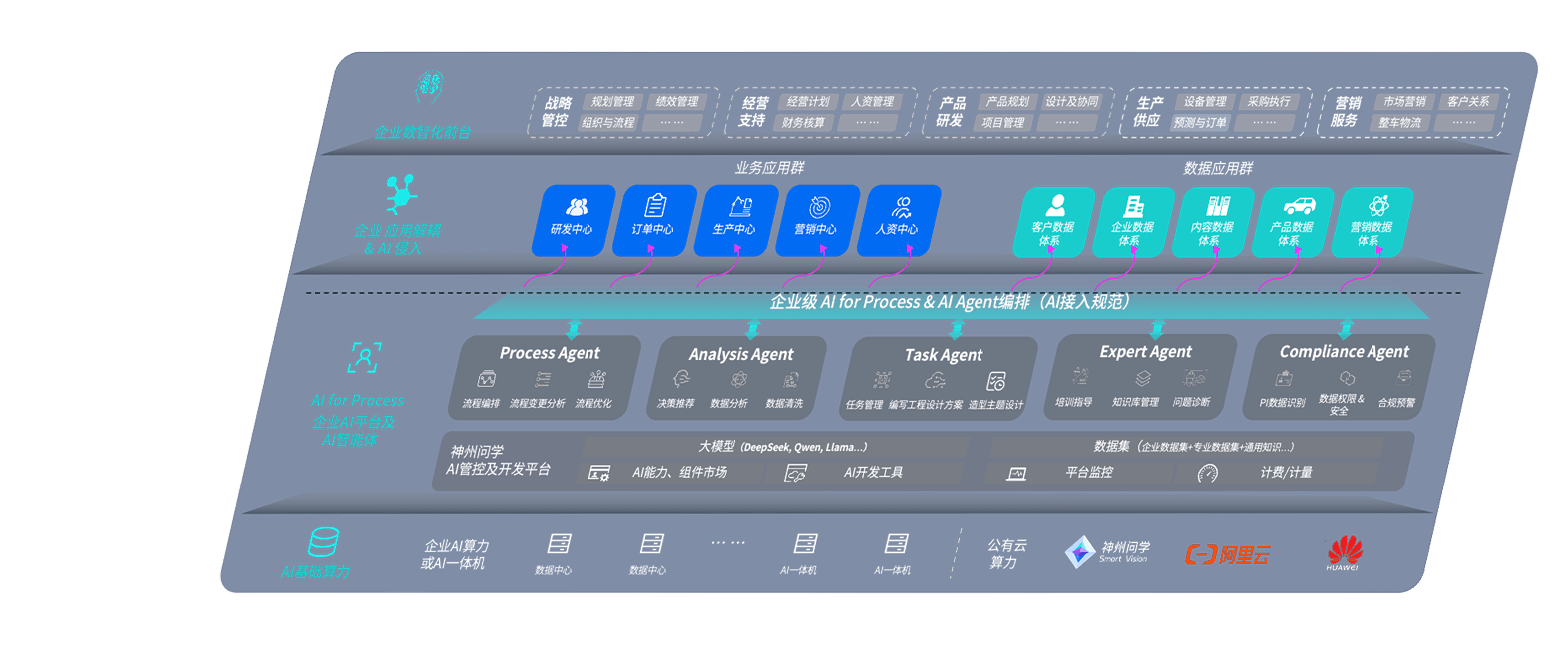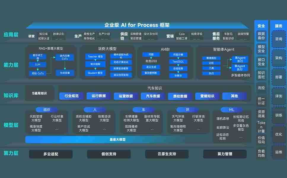 端到端的一站式AI工作空间深度融合了从企业战略规划到日常经营的全流程业务板块,,定向解决车企内部领域多、、、、部门多、、、、链条长、、场景碎片化等难题,,支持车企快速构建以AI为核心的生产力写作体系,,实现任务执行与AI能力的无缝集成与交互